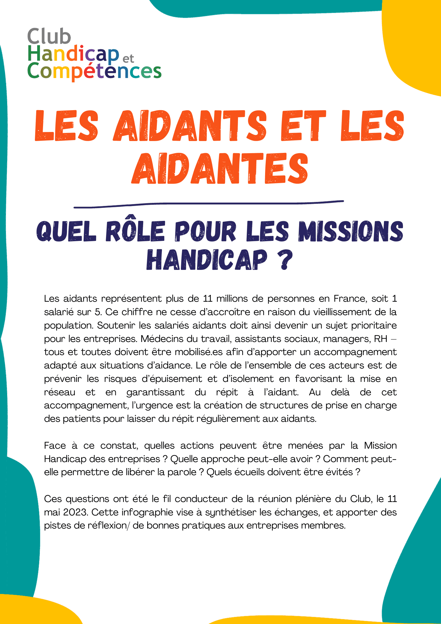 Découvrez l'infographie du Club Handicap et Compétences sur les aidants à destination des missions handicap !